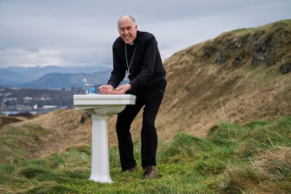 Bishop McGee sets up the big sink. Credit: Bishop’s Conference of Scotland