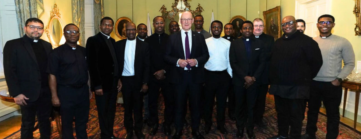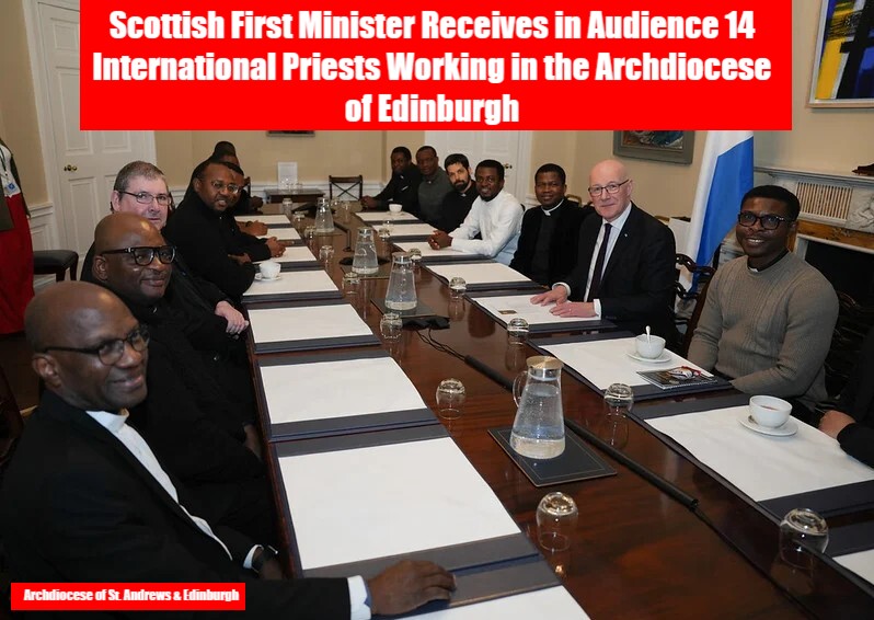 The Archdiocese of St. Andrews and Edinburgh has announced that the First Minister of Scotland, Mr. John Swinney, received in audience 14 international priests on Monday, 9 March 2026.